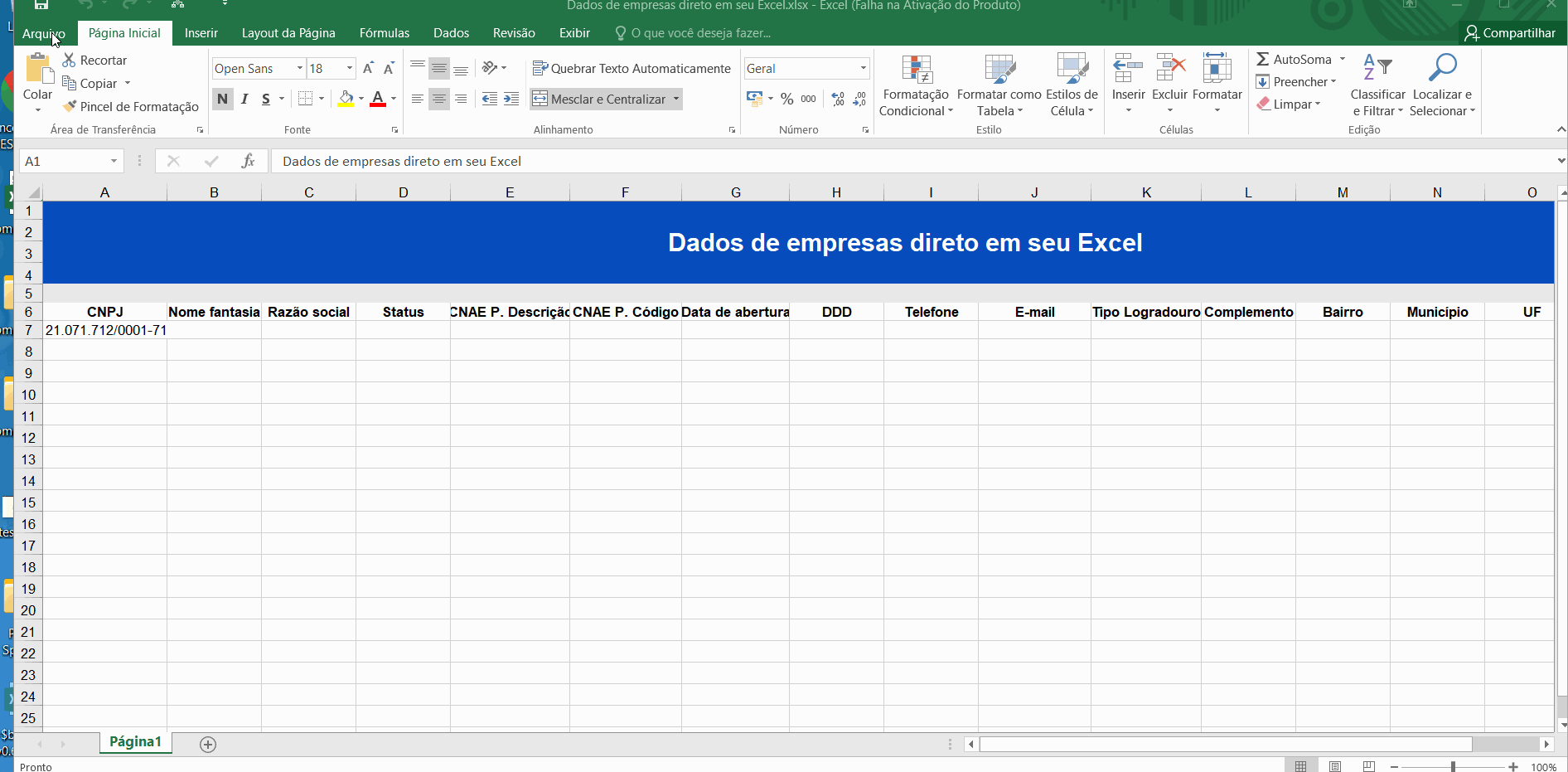 Consulte dados de qualquer empresa brasileiraa partir dos CNPJs em sua planilha e otimize sua prospecção.
